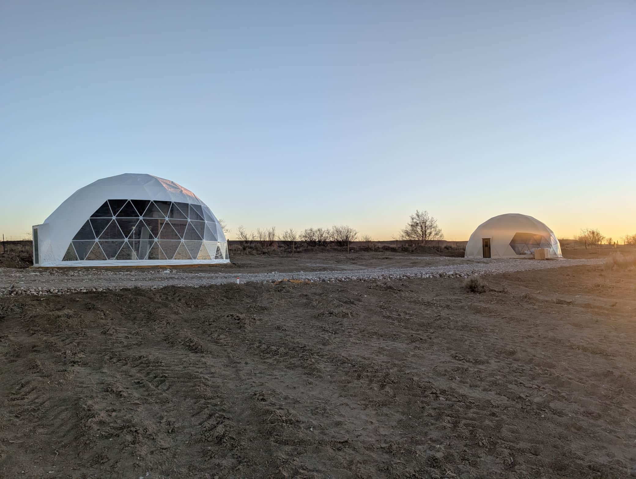 ⛺Enjoy your stay in our Luna Geodesic Dome, featuring a full bathroom, king sized bed, projector screen, and a panoramic window that looks out to the starry night sky.